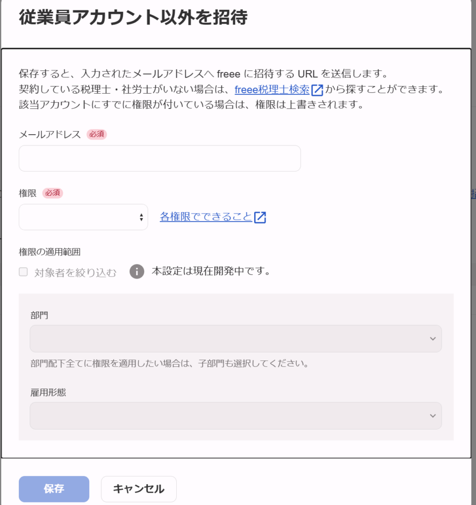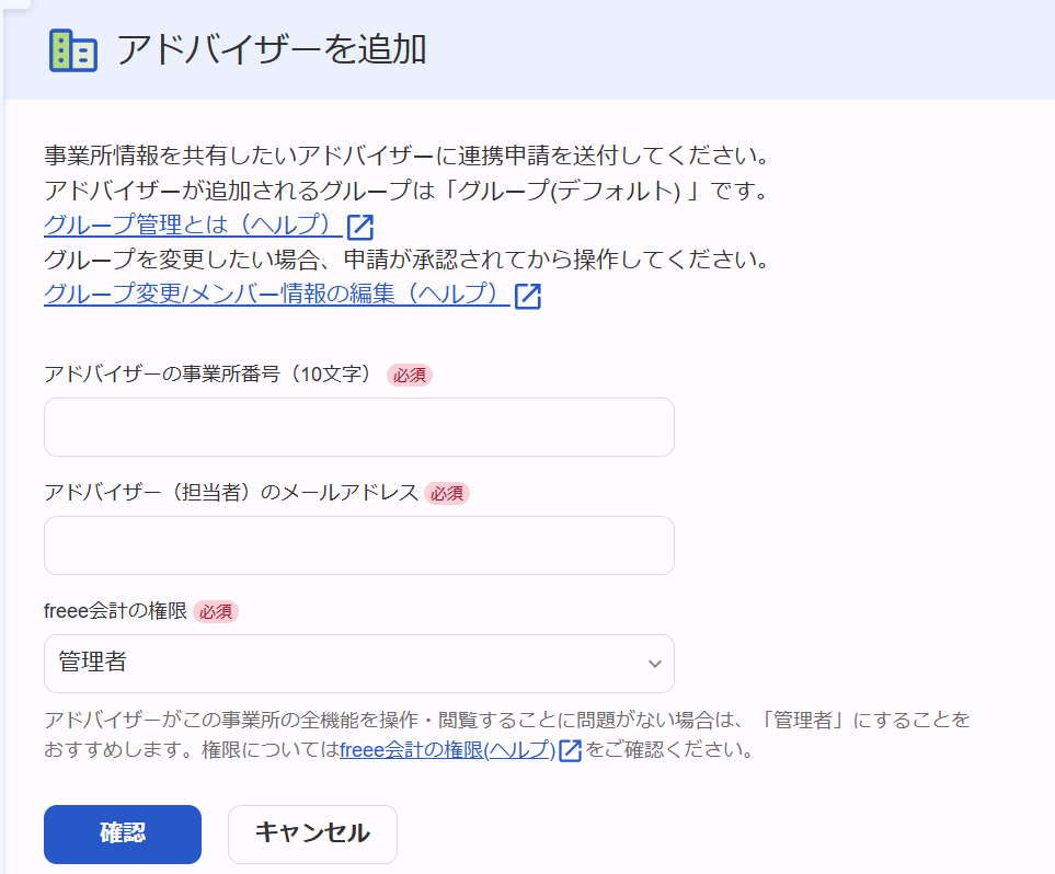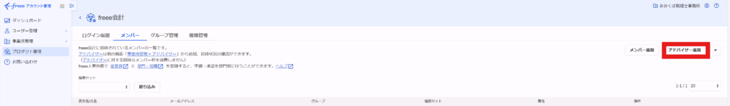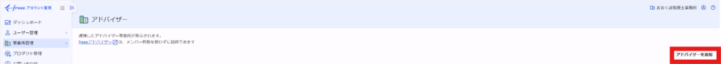 freee会計では、「メンバー招待」とは別に「アドバイザー招待」という枠組みがあります。